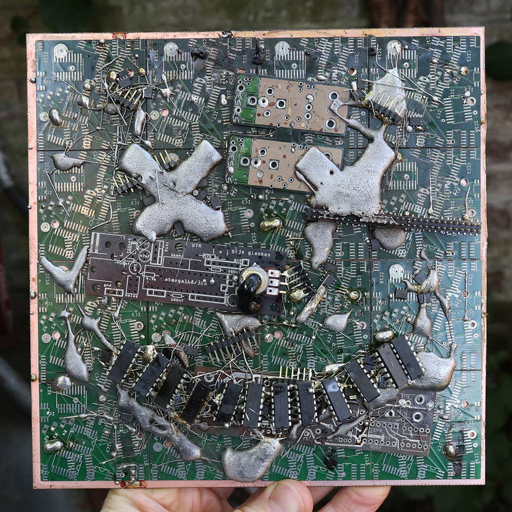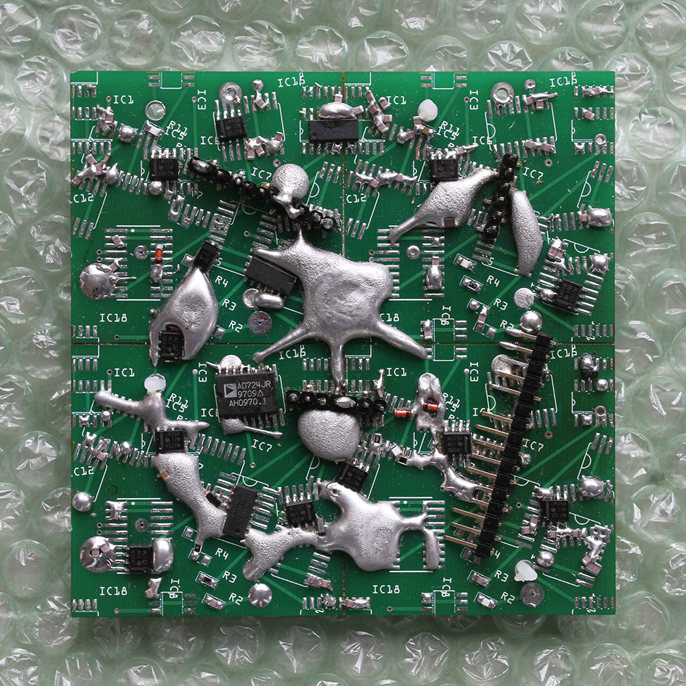 If i remember correctly it is about death, pcb manufacturing, components, and about my frustration with designing circuits that have to function, focussing on functionality and optimisation made me feel bad, making these circuits made me feel more free.