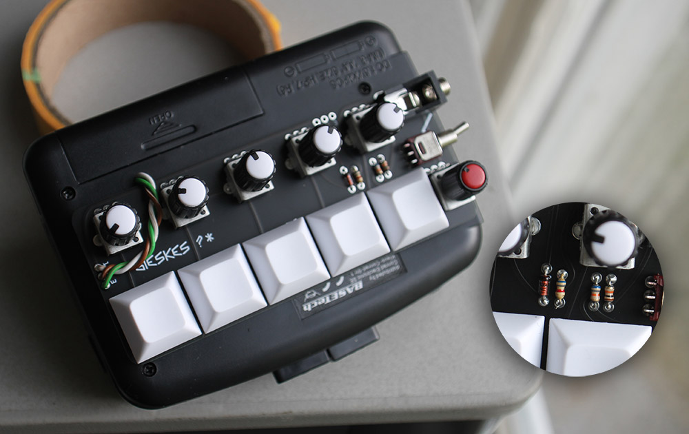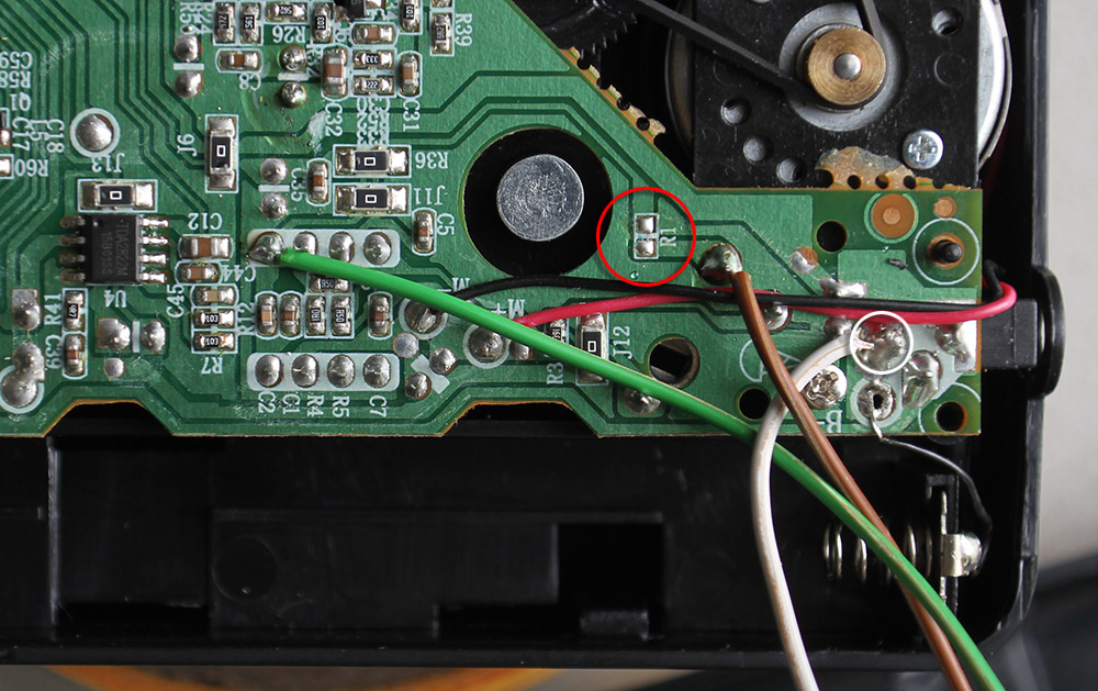Solder the components to the PCB, cut all legs short so it sticks good to the walkman with the double sided tape. Check the zoomed it picture for where what parts go's, the 100k resistor is replaced with a 68k resistor.